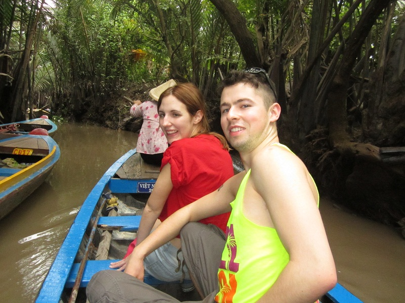 Following, enter the Bao Dinh Canal to head into Ben Tre Province, or the country of coconuts. Here, learn about the local agricultural model known as Garden-Pond-Cage. Taste some local treats like coconut candy and honey tea as you sit back and relax on your wooden river boat in the comfort of the shaded canals covered by water-coconut trees.